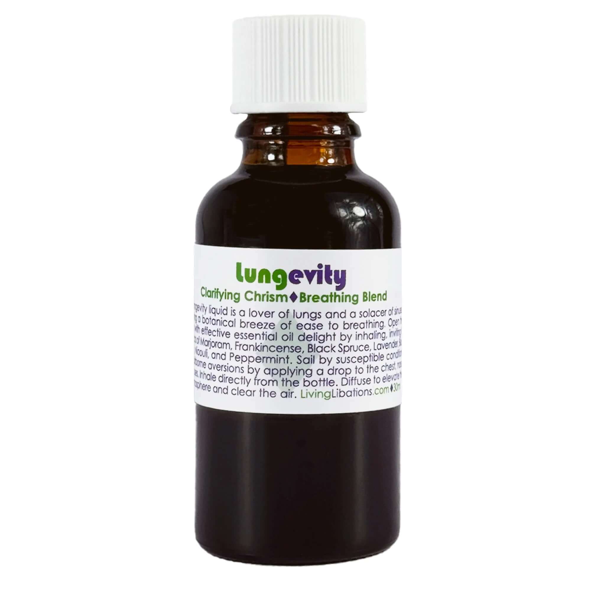 Living Libations Lungevity Essential Oil Breathing Blend (formerly Longevity Liquid) by Living Libations is a fortifying botanical blend that opens airways, clears congestion, and refreshes your senses. Created to comfort lungs and soothe sinuses, this revitalizing formula delivers a cooling, clarifying experience that encourages deep, effortless breathing.