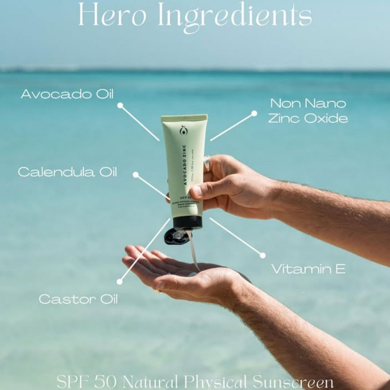 SPF 50 Natural Physical Sunscreen 100ml - Avocado Zinc